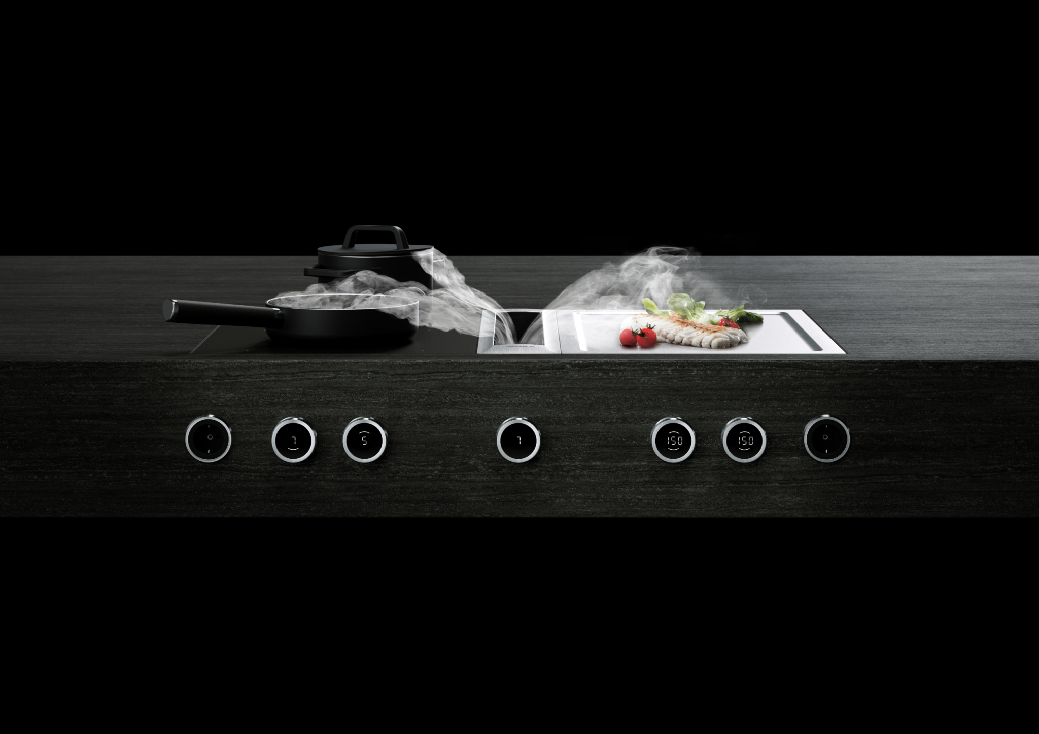 - Die Technologie zieht Kochdünste und Gerüche dort ab, wo sie entstehen.