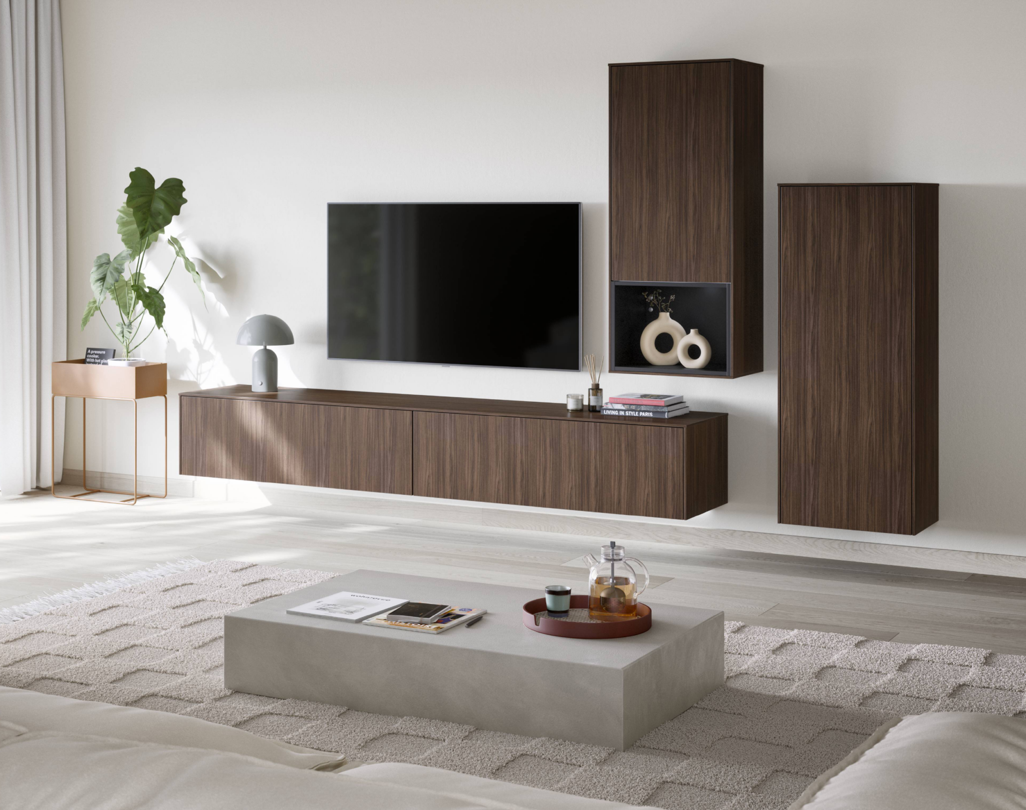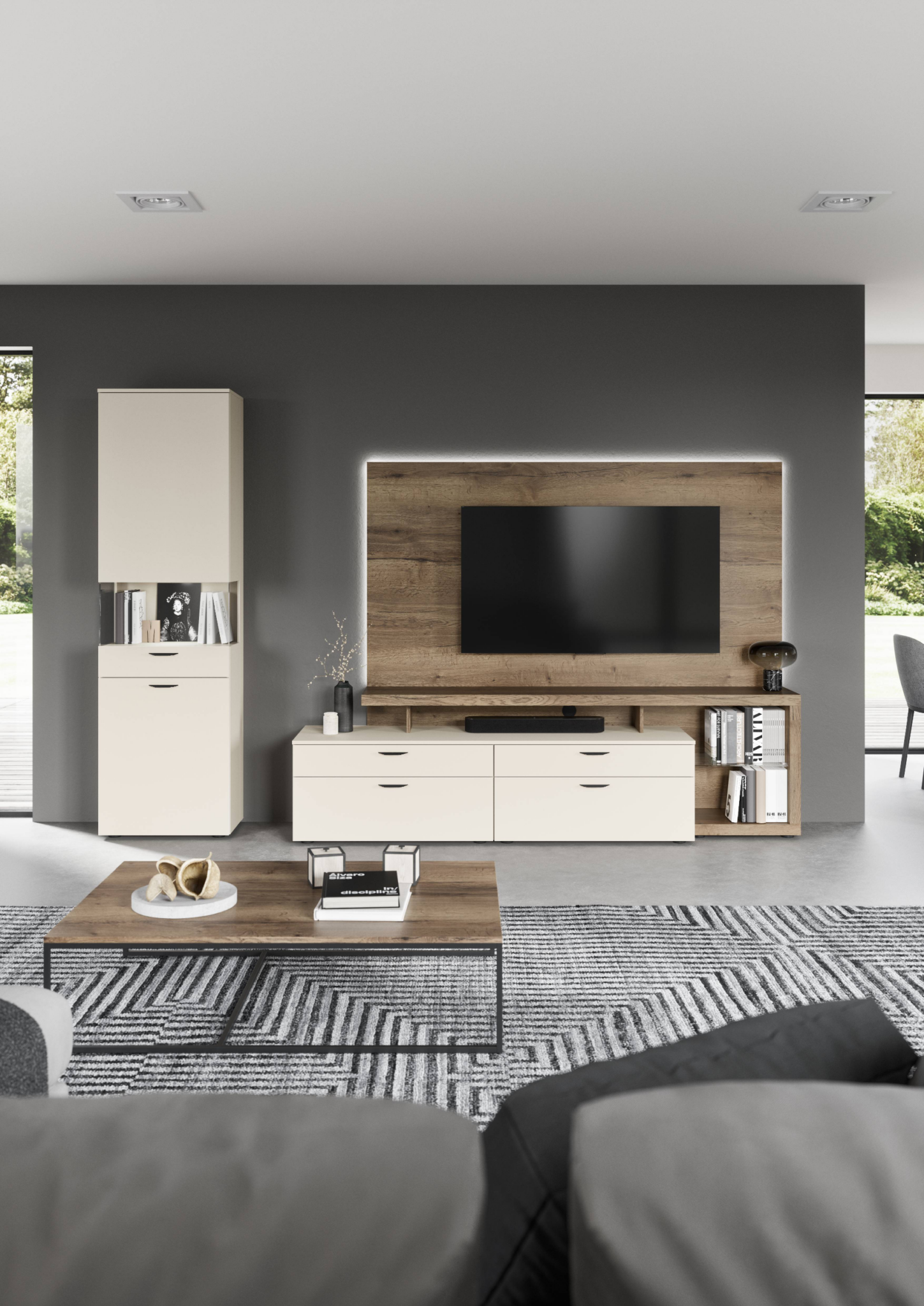 - Lichtstimmung: Integrierte LED-Lichtprofile in Regalböden oder Vitrinen setzen Ihre Lieblingsobjekte perfekt in Szene und sorgen für indirektes Wohlfühl-Licht.